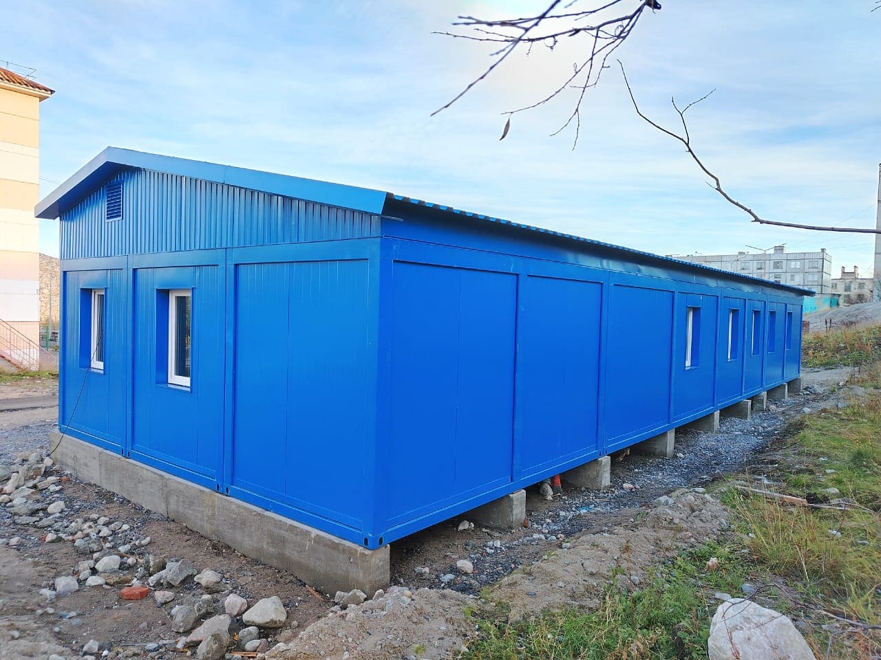 ФАП на базе 15 модулей "Каскад". Мурманская область, п. Оленья губа.